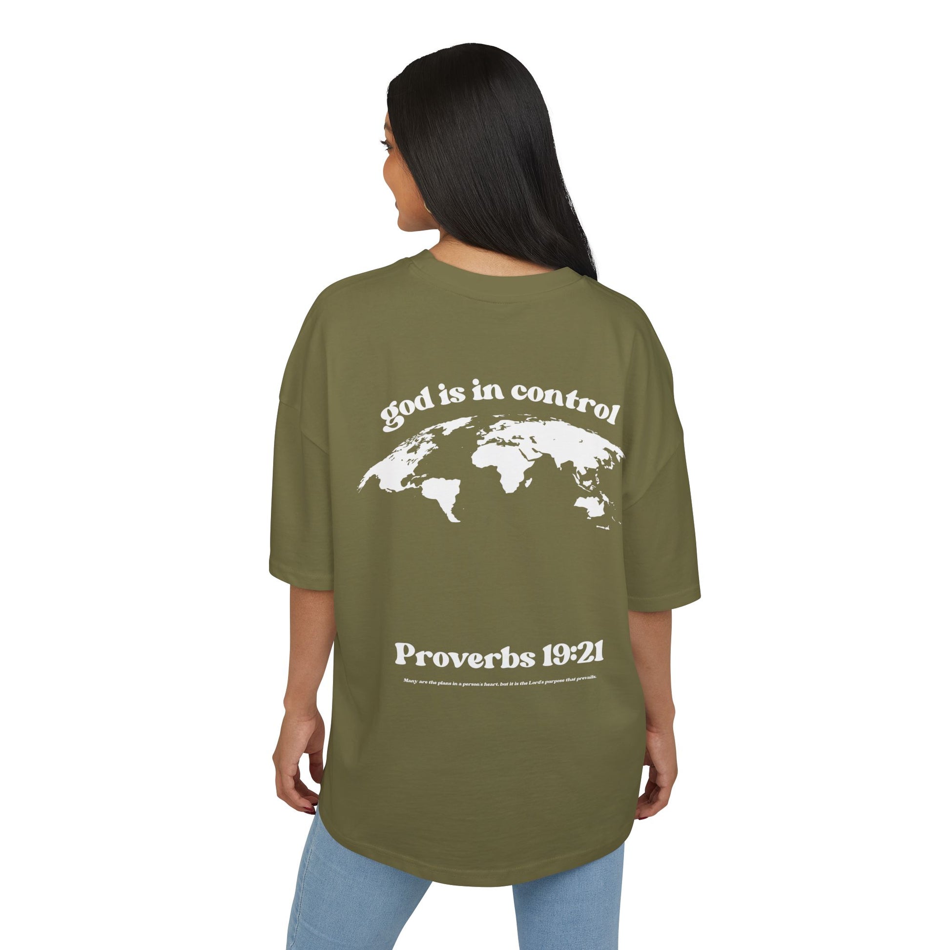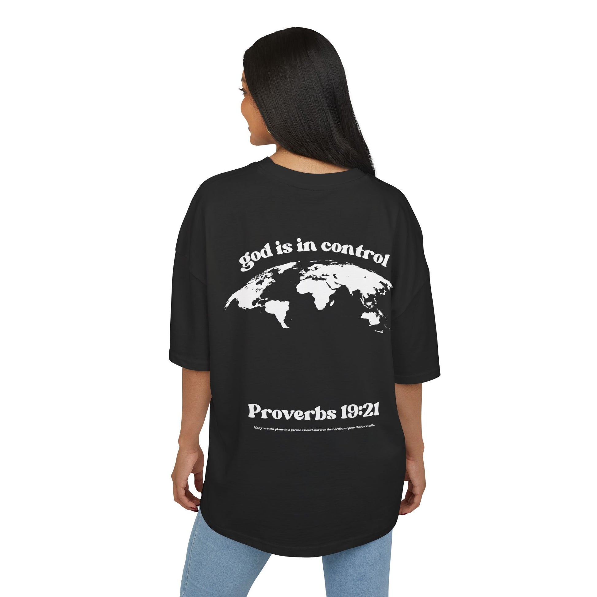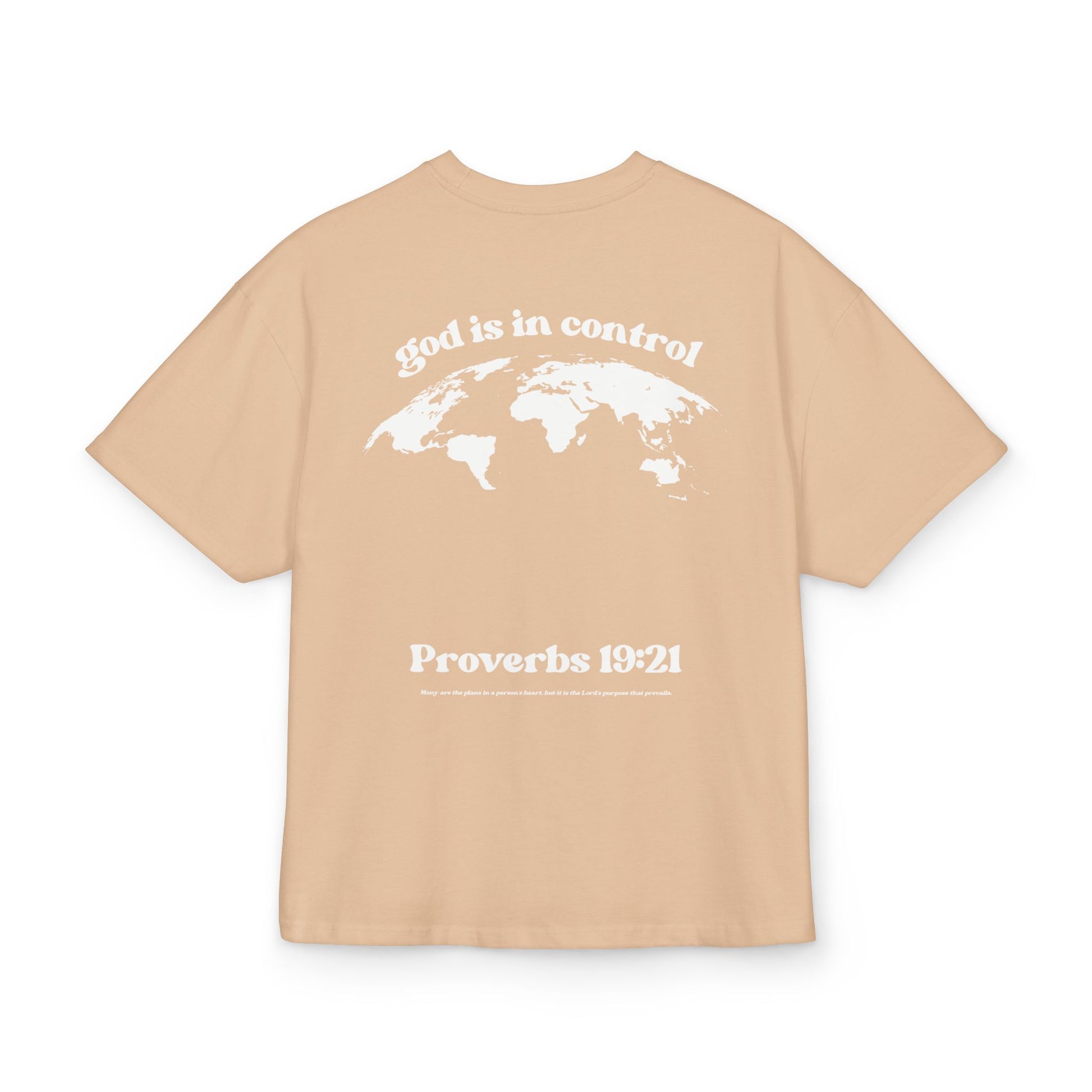 Featuring the bold statement “God is in control” alongside Proverbs 19:21, this shirt is a reminder of trust, faith, and confidence in God’s plan—no matter the circumstances.