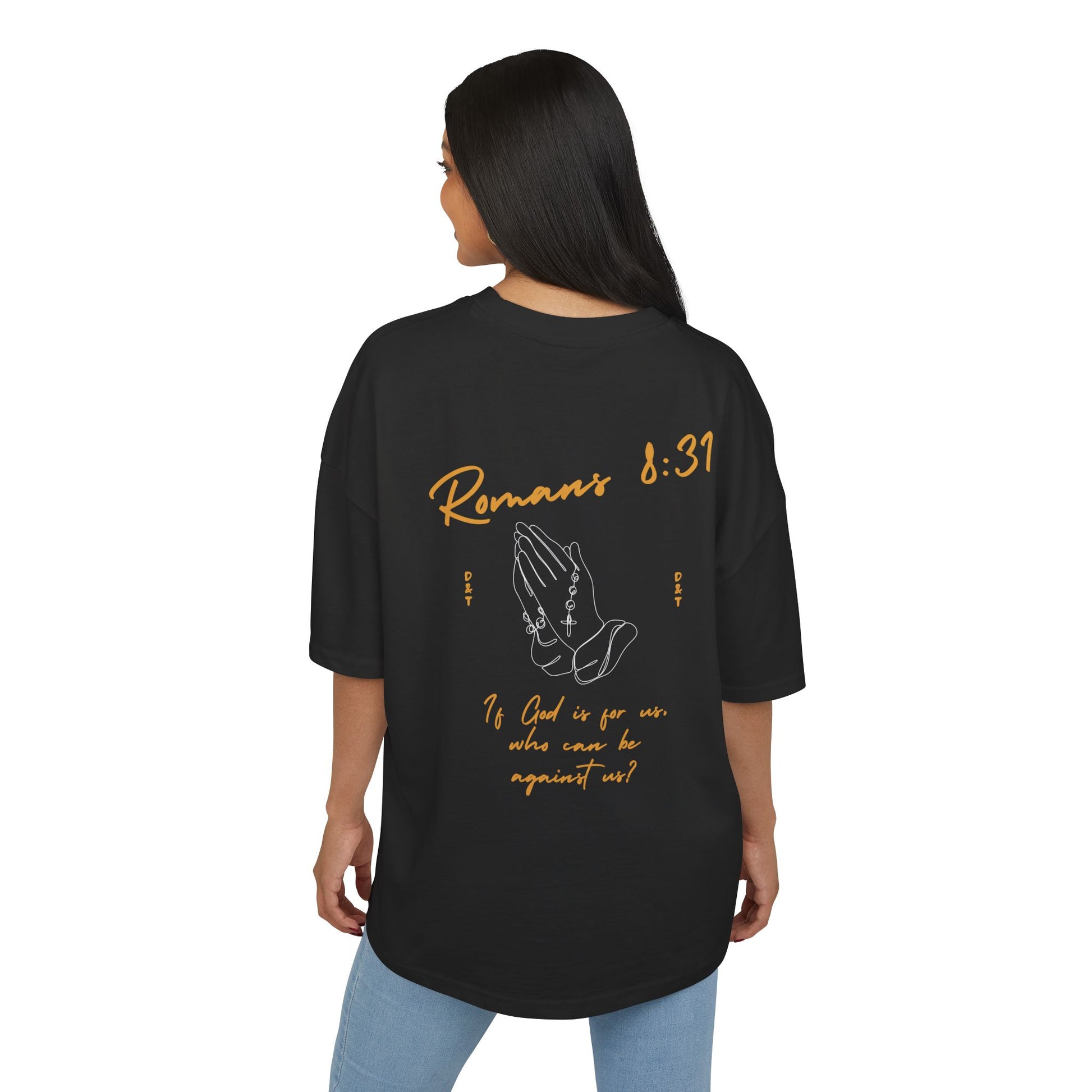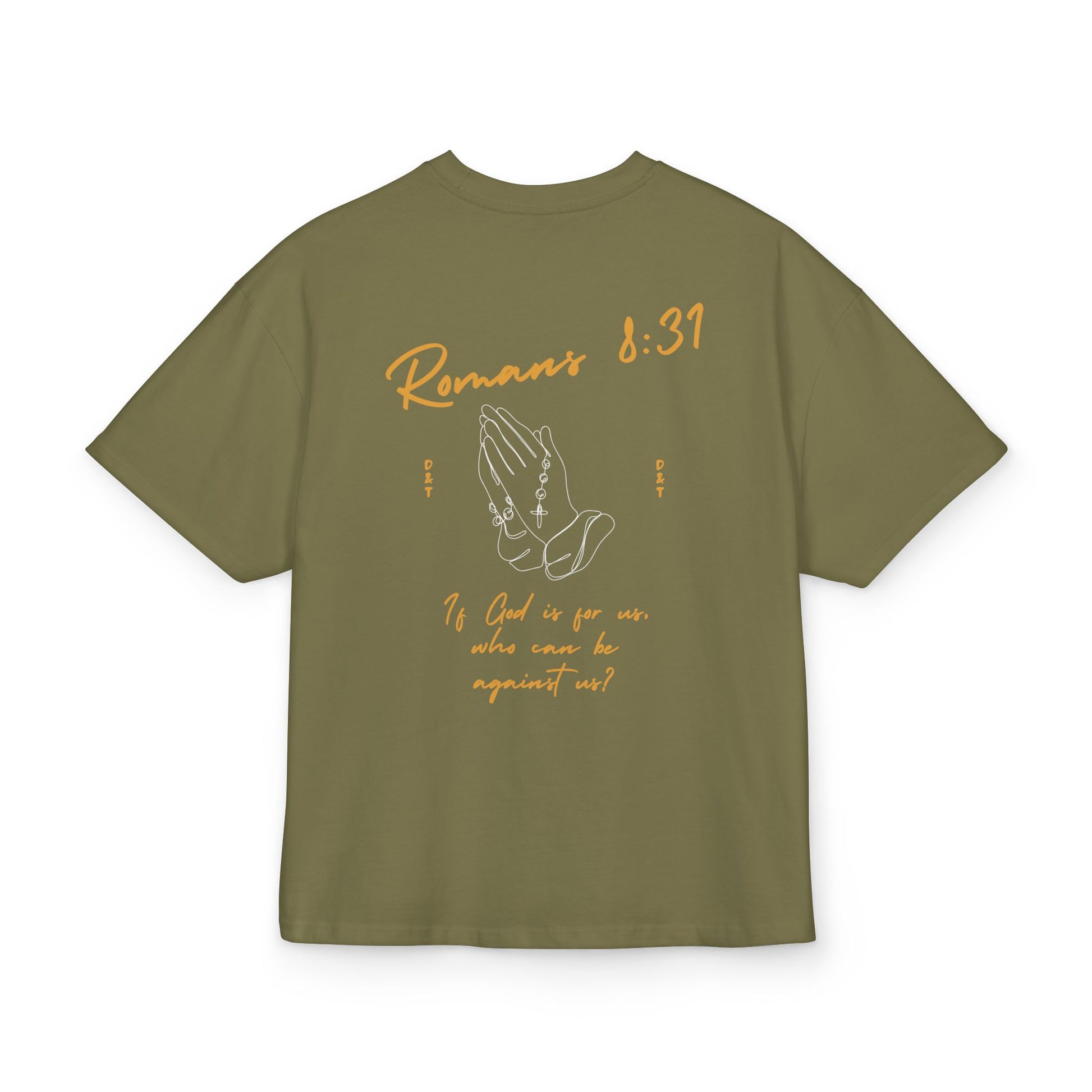 A classic and comfortable unisex T-Shirt featuring the powerful Romans 8:31 verse. Made of heavy cotton with a boxy fit and dropped shoulders for a relaxed feel. Perfect for those looking for a strong and smooth fabric for everyday wear or as a gift for religious holidays and celebrations.